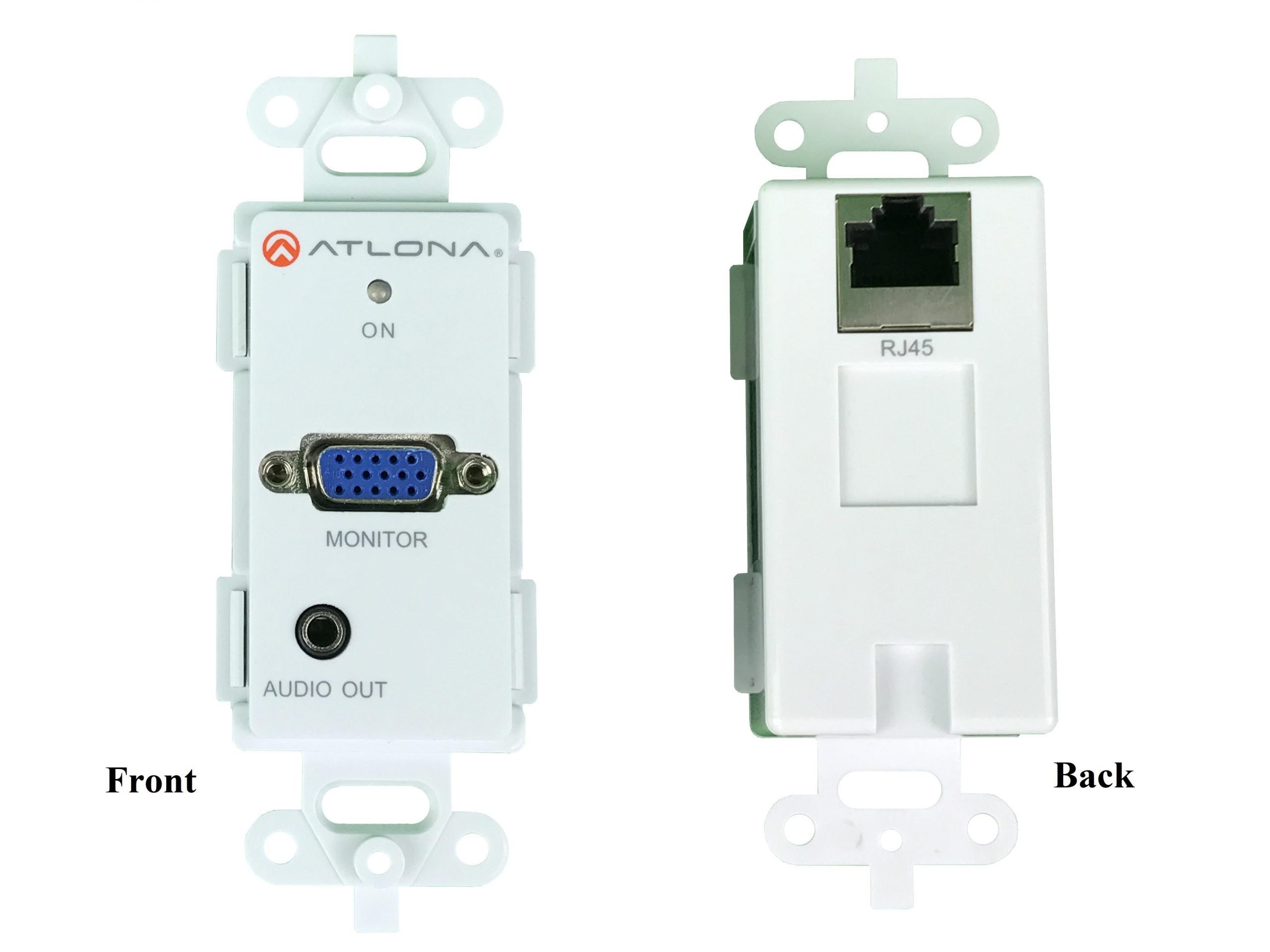 one receiver wall plate which extend VGA and audio signals up to 492′ using a CAT5e