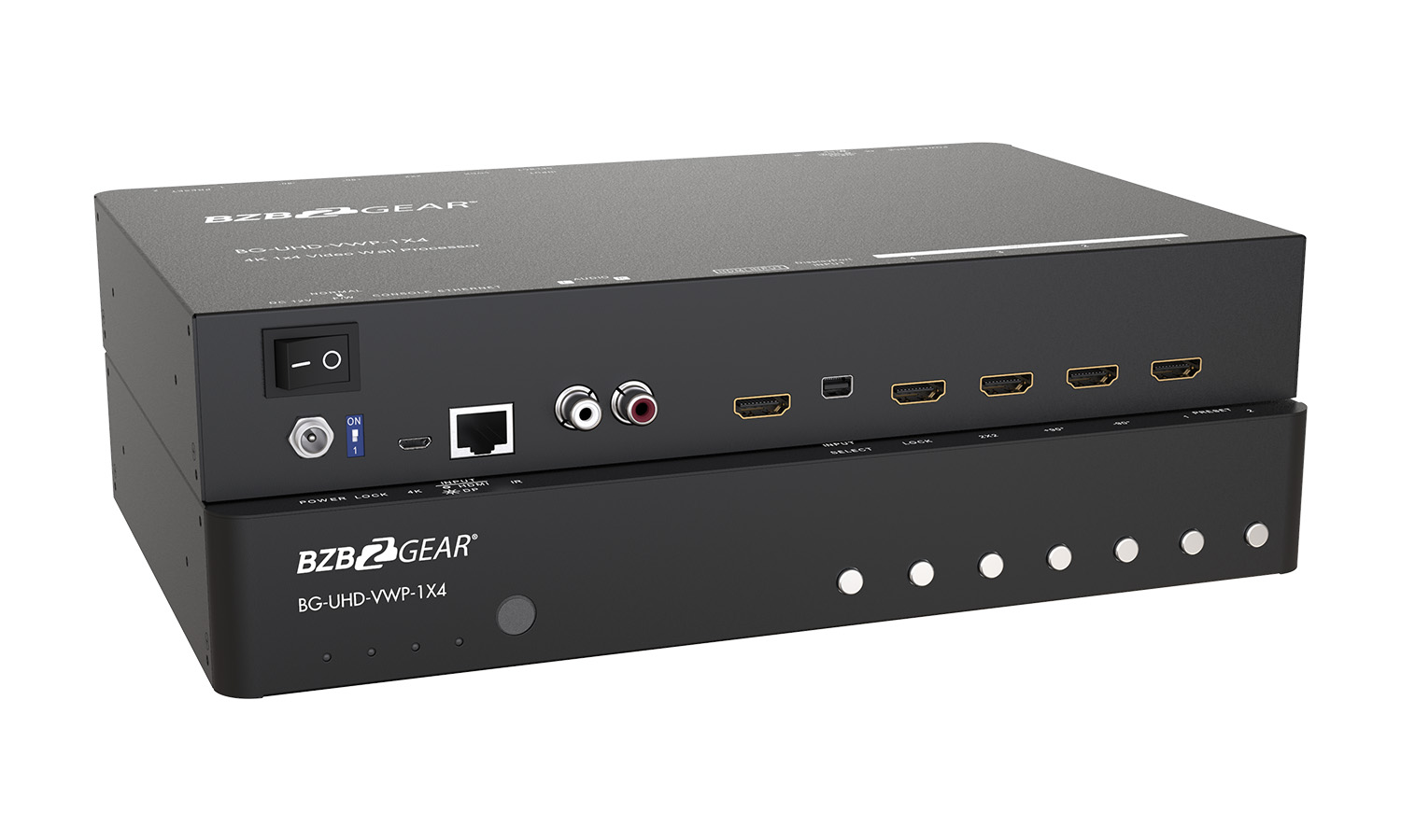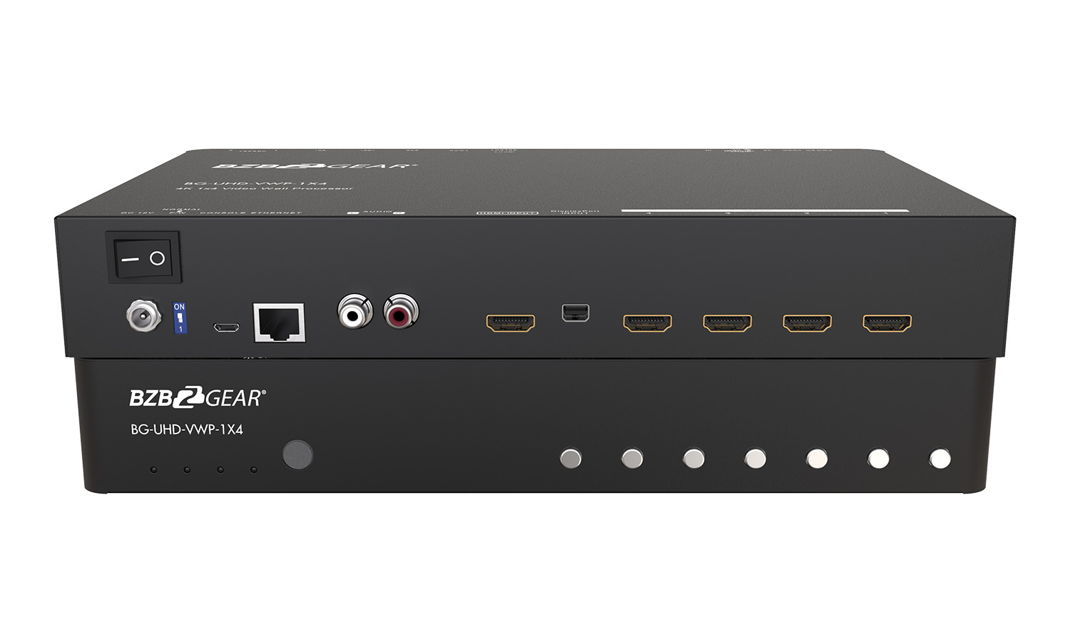 The BG-UHD-VWP-1X4 4K 1×4 Video Wall Processor is a high-quality video processor that is perfect for multiple flat panel displays or projectors. It is is designed to support HDMI/DisplayPort signals up to 4K2K @ 60Hz 4:4:4, providing you with crisp, clear images that are ideal for digital signage, broadcasting, education, and surveillance systems. The embedded scaler technology ensures that video signals are converted to match the native resolution of monitors, flat panel displays, and projectors, while user-selectable output settings up to WUXGA (1920×1200) allow for customized display options.