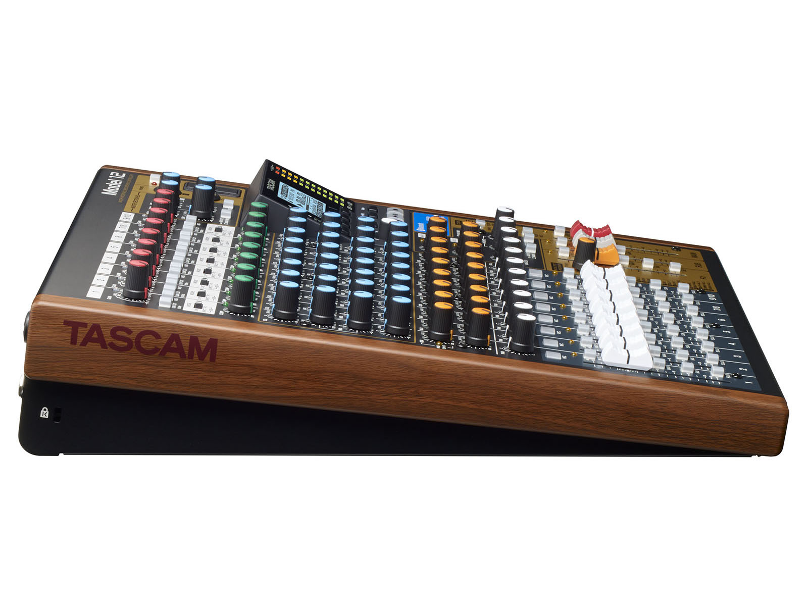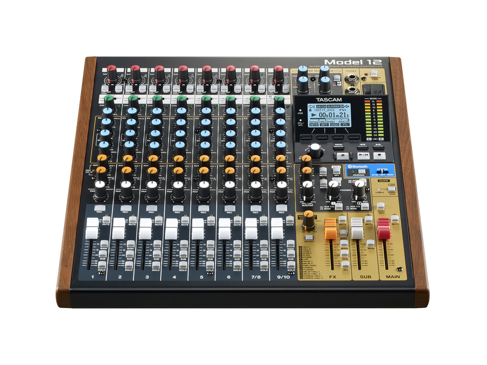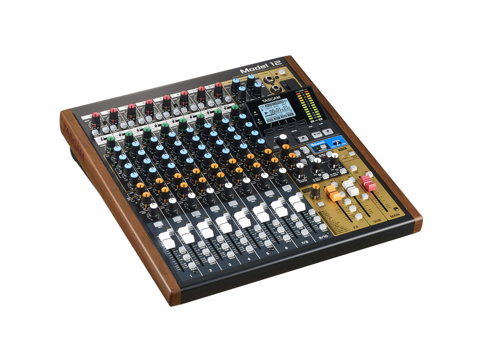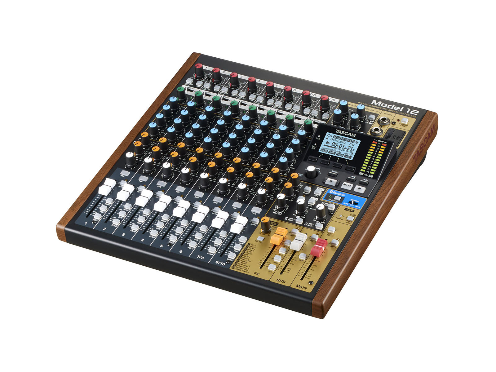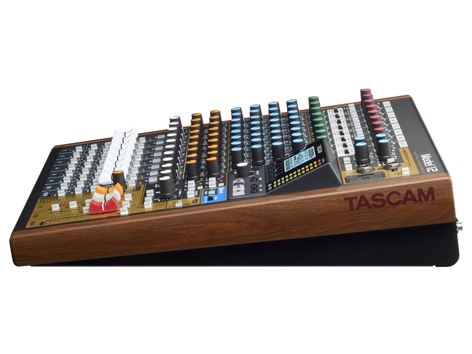 The Model 12’s seamless integrated workflow facilitates less focus on the technical and more on the creative. The comfortable, familiar feel of the Model 12’s 60mm faders and 1-knob compressor, 3-band EQ, and TASCAM’s high-quality reverb effects allow fast tweaking of mixes and tones.