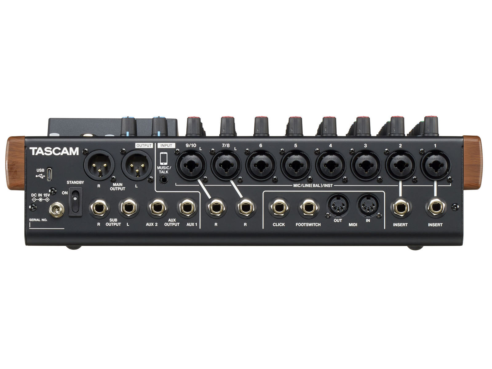 TASCAM’s Ultra-HDDA (High Definition Discrete Architecture) mic preamps with EIN (Equivalent Input Noise) of -128dB ensure natural low noise and high-grade sound quality. Additionally, Hi-Z line level inputs are included on all channels for direct instrument input.