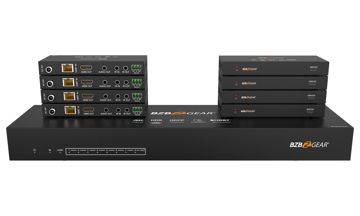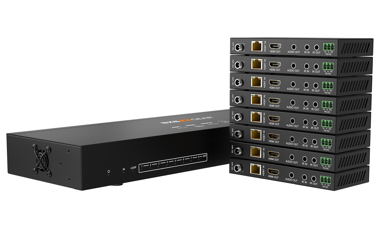 - Support 1 HDMI input, 1 HDMI loop output and 8 HDBaseT outputs