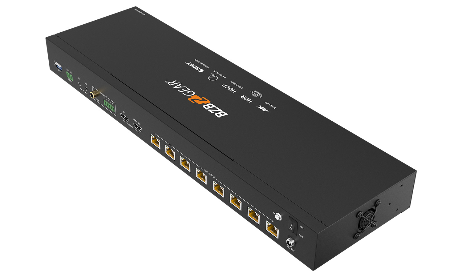 The BG-UDA-E18 is a 1×8 4K HDBaseT splitter/extender kit. Supporting resolutions up to 4K @ 60Hz, users can extend HDMI sources over category 6 cabling at distances up to 390 feet, or up to 490 feet at 1080P @ 60Hz with the included HDBaseT extenders. With the ability to connect to one local and eight remote displays, this unit is ideally suited for use in restaurants, sports bars, retail spaces, and auditoriums.