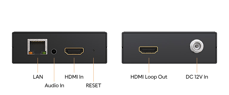 The BG-HAVS is equipped with one HDMI input as well as an HDMI loop out. The loop output allows broadcasters to monitor the input source on a separate display. Stereo audio can be embedded into the stream via the 3.5 mm input.