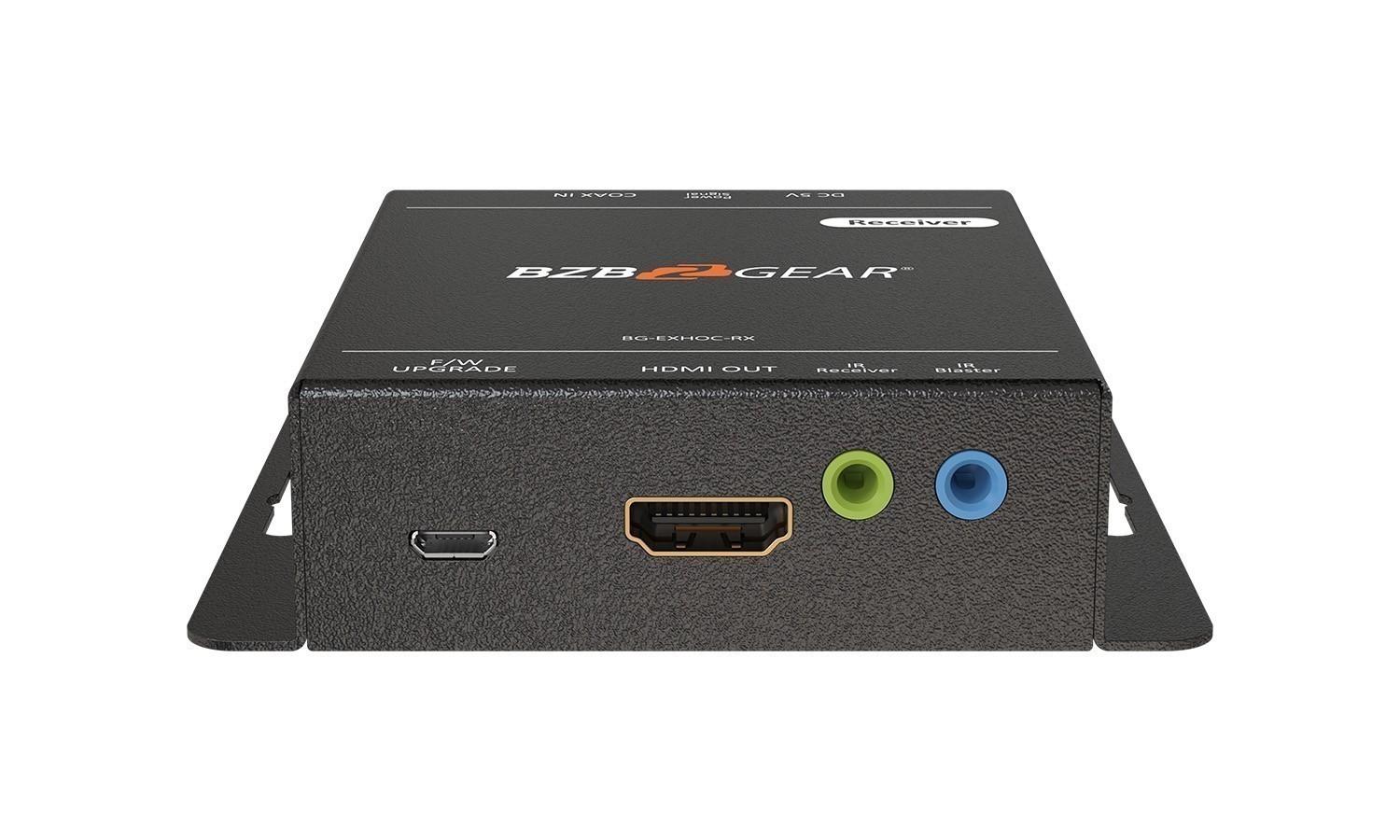 The BG-EXHOC is a 4K HDMI signal extender that increases the range of an HDMI input signal up to 110m (363 ft) over a single coaxial cable. The use of coaxial cable provides a durable, inexpensive method of transmitting uncompressed HDMI signals over long distances.