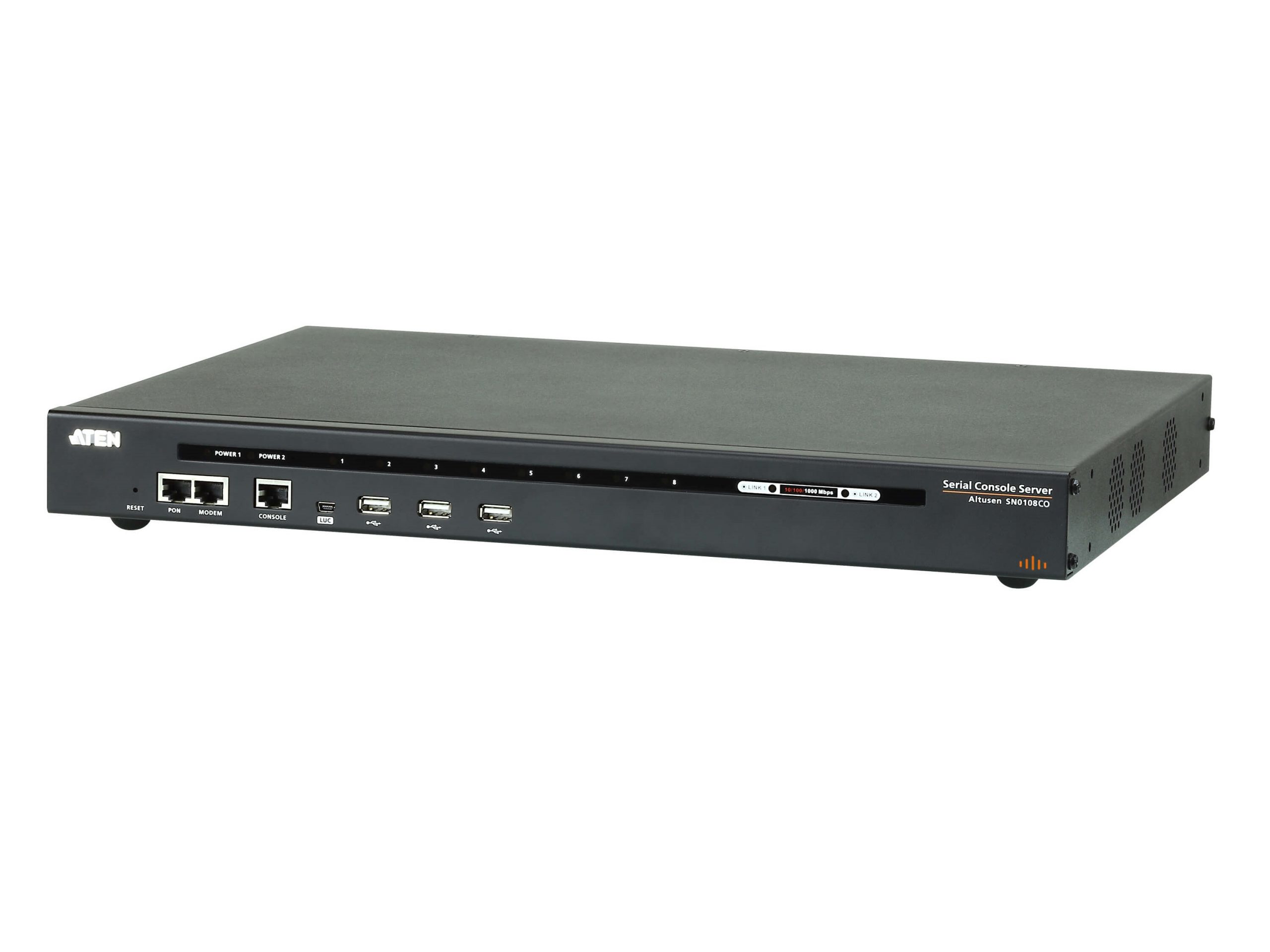 Available in 8-, 16-, 32- and 48-port models, the SN01xxCO serial console servers offer both in-band and out-of-band (OOB) remote serial console access to servers and network devices via a direct Telnet/SSH client and Java viewer. The OOB management enables IT administrators to manage network devices (e.g. router, switch, UPS) in server rooms using management networks that are separated from the main/production networks. Where access difficulty occurs in the production network, the administrators can still access them via the console server. The serial console servers offer out-of-band access methods such as direct console connection from a local computer, USB console connection from a laptop, PSTN connection via modem, or hybrid network connection via the dual LAN ports (one connected to the production network and the other connected to the management network).